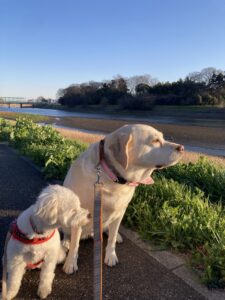 日本セラピーメイト協会から派遣された体格も性格も犬種も違うふたりが一緒に楽しく暮らしています。