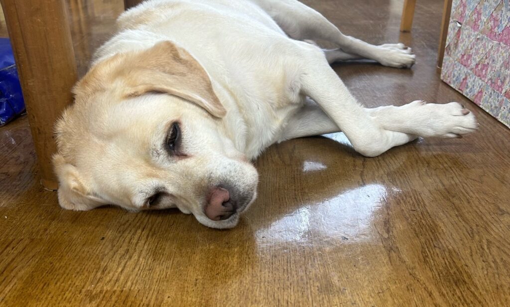 ホールの真ん中でスヤスヤと眠るのでした… (-_-)zzz