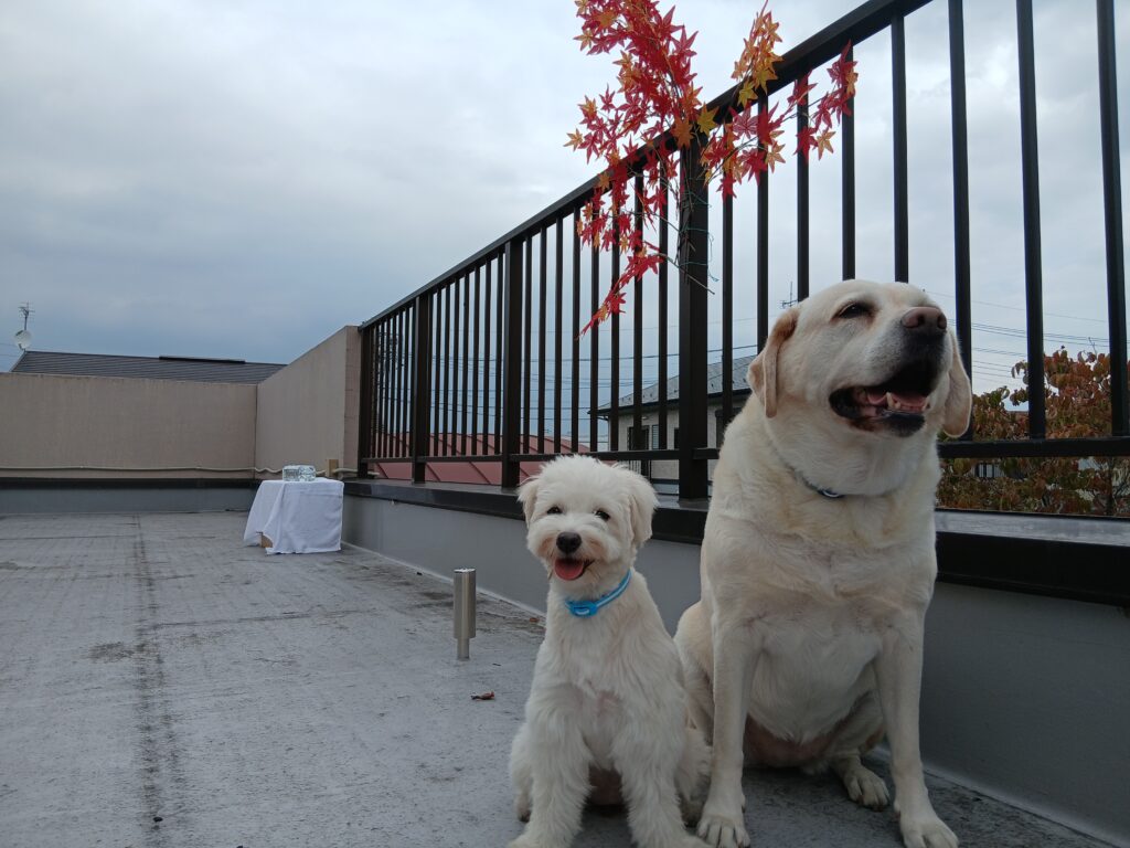 最後は2匹で紅葉の下ではい、ポーズ🐾