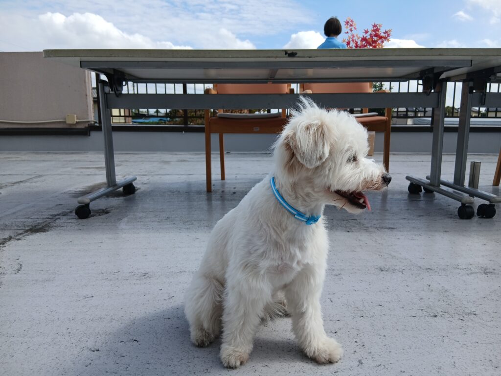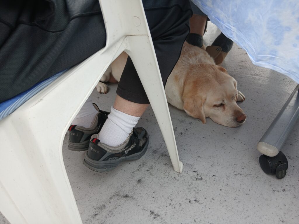 お茶会中ベテランのヴェリーちゃんは気持ちよさそうにテーブルの下で過ごしておりました
