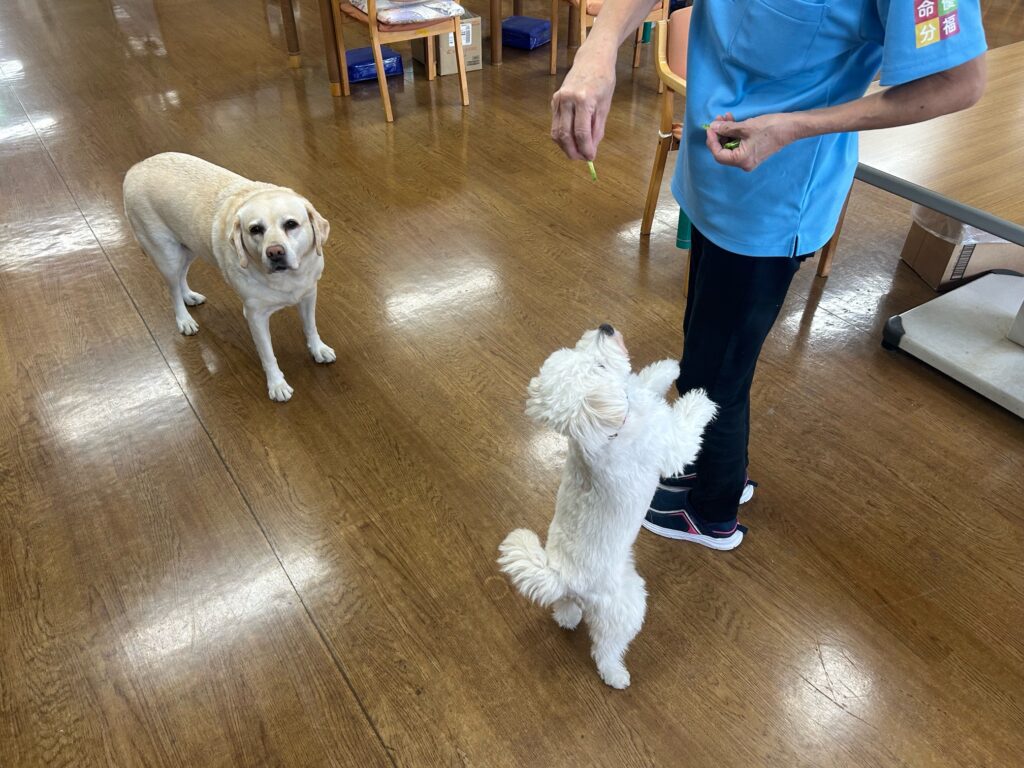 投げたおやつをお口でキャッチ!の練習をしました🐶