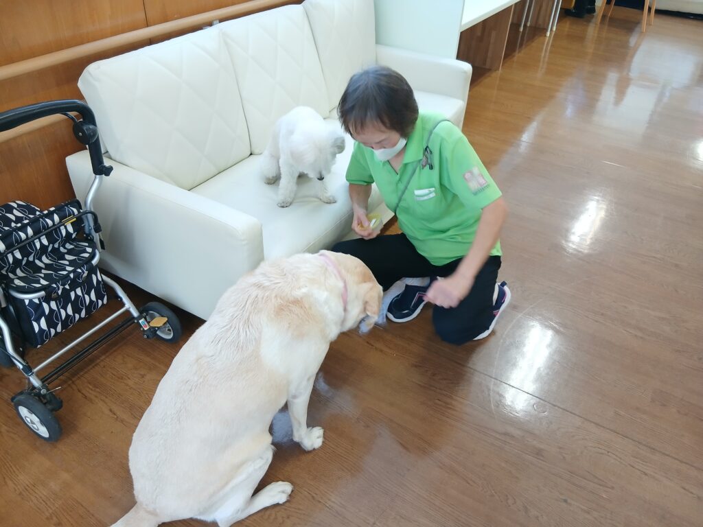今回はショートステイの佐久間主任とわんこの関わりあいをご紹介致します