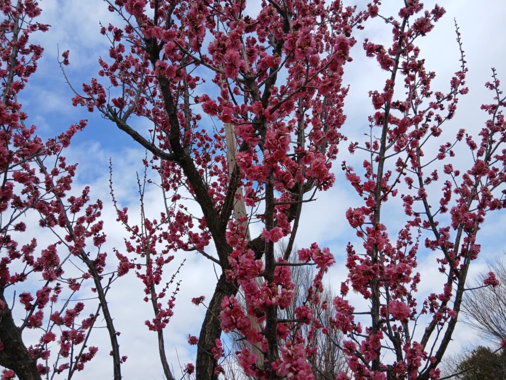 お散歩の最後は満開の梅の前で記念撮影です
